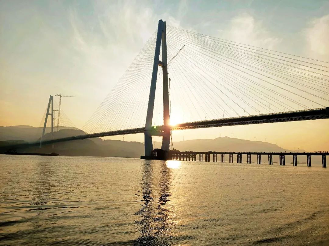 湖北赤壁長江大橋連接湖北洪湖、赤壁革命老區(qū),是世界跨度最大的鋼混組合梁斜拉橋。