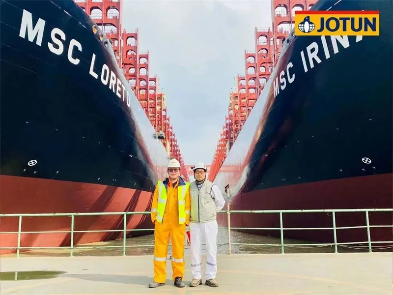 因船型巨大,佐敦為該系列船型派駐了多支由高級(jí)技術(shù)服務(wù)領(lǐng)頭的檢驗(yàn)小組,HPS防污漆統(tǒng)噴時(shí),有多達(dá)6名佐敦涂裝顧問(wèn)在現(xiàn)場(chǎng)提供技術(shù)服務(wù)。